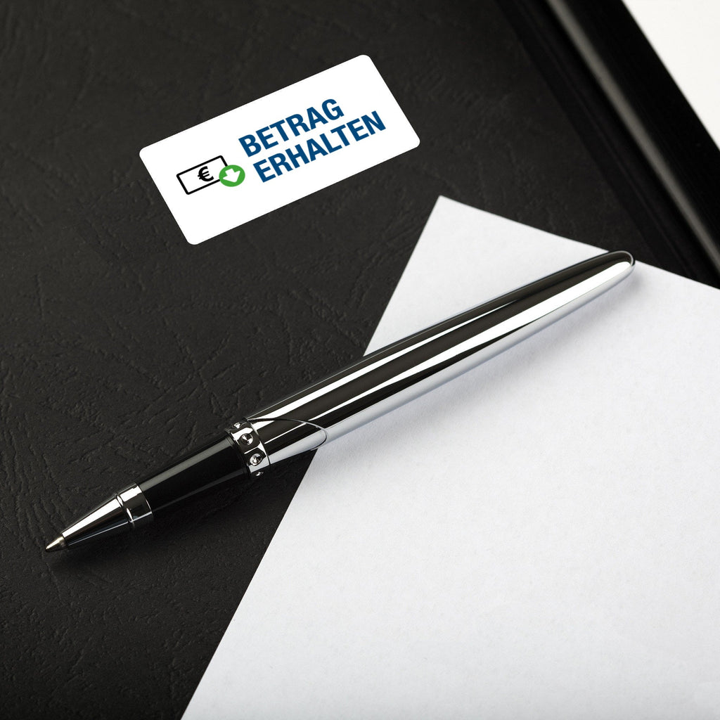 Die Organisationsetiketten "Betrag erhalten" in der praktischen Spenderbox mit passendem Piktogramm sind hilfreich für jeden Büroalltag.