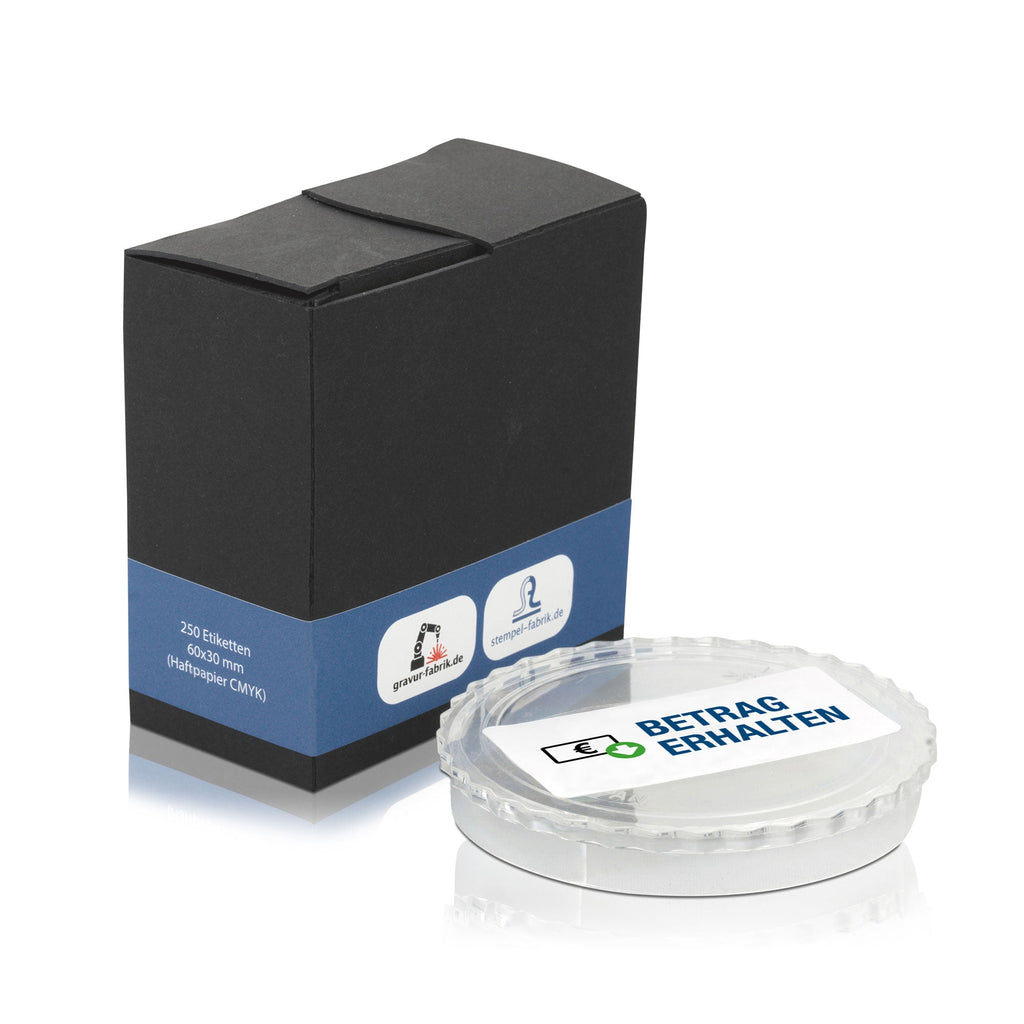 - Aufkleber 60x30 mm (Druckfläche 54x26 mm), inklusive Digitaldruck 4-farbig