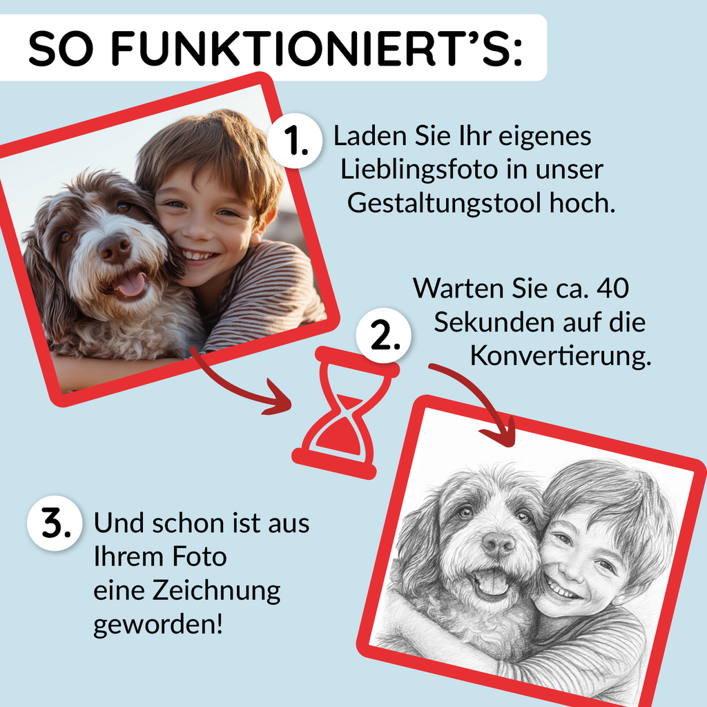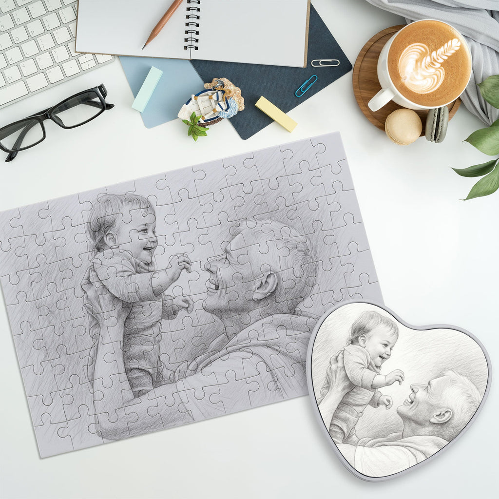 Machen Sie einem besonderen Menschen eine Freude, die von Herzen kommt: mit einem Puzzle, das Ihre Erinnerungen auf einzigartige Weise festhält. Laden Sie einfach Ihr Foto hoch – wir verwandeln es in eine liebevoll gezeichnete Bleistiftzeichnung, die exklusiv auf das Puzzle gedruckt wird. So entsteht ein ganz persönliches Motiv, das beim Zusammensetzen Stück für Stück für Freude sorgt.